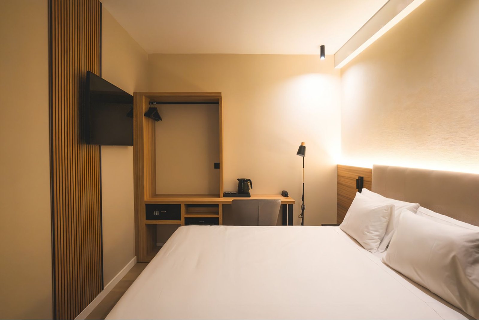 Si su prioridad es el descanso profundo tras un día recorriendo la ciudad, la Habitación Interior del Hotel Gaudea es su mejor elección. Con una superficie optimizada de 14 m², esta estancia ofrece todo el confort de un 4 estrellas en un ambiente recogido y silencioso. A pesar de ser nuestra categoría de entrada, no escatimamos en detalles: disfrute de una ducha revitalizante, relájese viendo la TV de pantalla plana o prepárese una bebida caliente con el set de té y café incluido. Una estancia funcional, elegante y pensada para su sueño reparador.